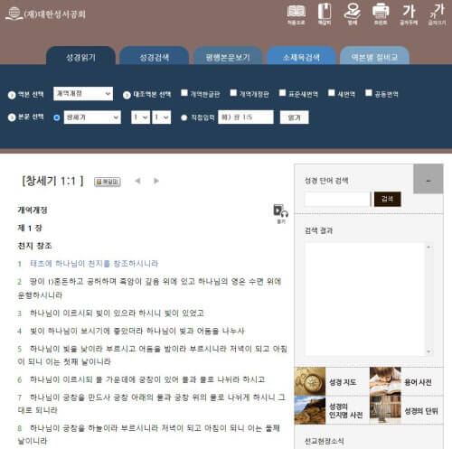 대한성서공회 성경읽기 홈페이지 소개